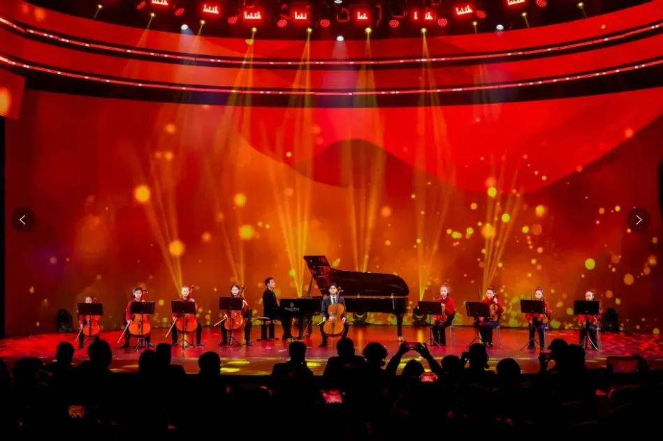 录制现场,传统纹样与当代科技会通的舞台搭配银河般炫酷灯光,打造千里浸式不雅赏体验。海外钢琴家汪洋与大提琴演奏家赵宰亨的跨界合作拉开序幕,《跑马+云宫迅音》《我爱你中国》的演绎中,钢琴灵动与大提琴深千里交汇,中西乐器碰撞出颠簸火花。陈赞家韩磊以宏大嗓音唱响《好儿郎》,“少年自有少年狂,敢与寰宇试矛头”的歌词,精确契合马年“疾驰奋进”精神,引发少年追梦。