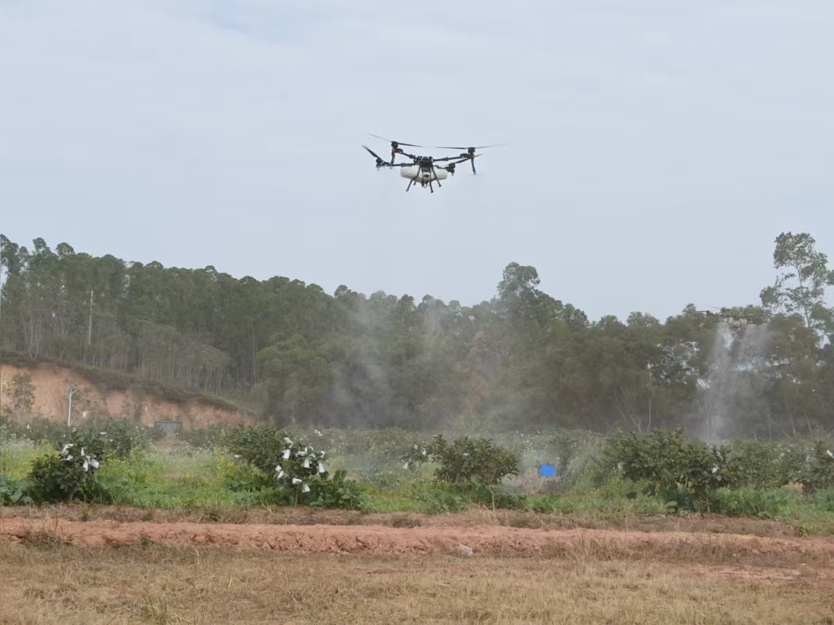 农业无东谈主机在新塘村番石榴基地功课