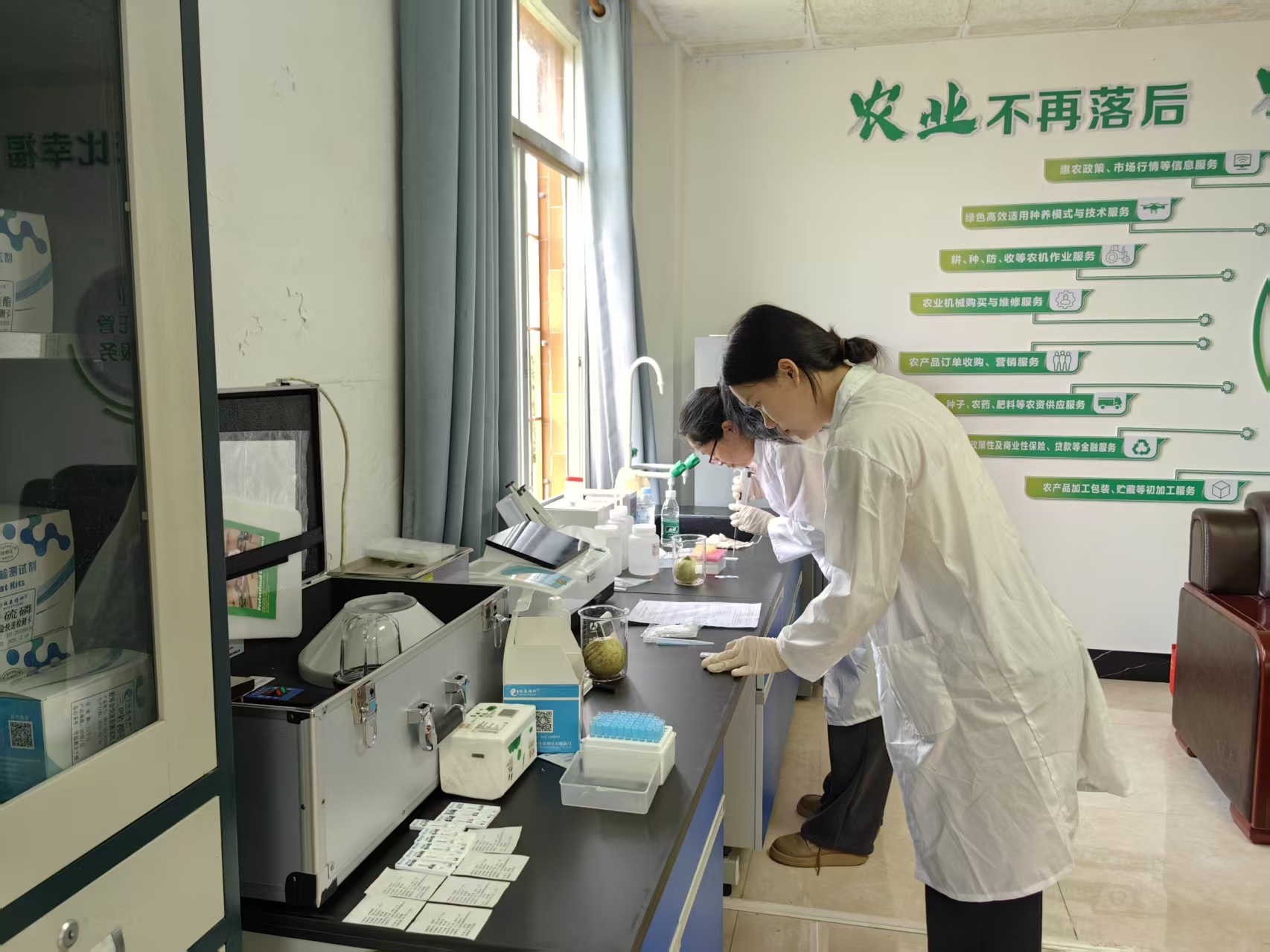在化州市新安镇新塘村农家具性量安全检测站,2名当地培养的检测员正在对行将出货的番石榴进行检测。