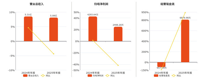 公司贸易总收入为5.08亿元,在已裸露的同行公司中排行第22,较昨年同呈报期贸易总收入减少2326.32万元,同比拟昨年同时下跌4.38%。归母净利润为2498.20万元,在已裸露的同行公司中排行第20,较昨年同呈报期归母净利润减少1795.44万元,同比拟昨年同时下跌41.82%。筹备举止现款净流入为6878.98万元,在已裸露的同行公司中排行第16。