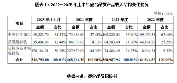 更值得警惕的是,盛合晶微毛利率的飙升更多并非源于技能溢价,而是单一客户驱动下业务结构的被迫调度。招股书夸耀,盛合晶微的收入主要分为三大板块:中段硅片加工、晶圆级封装、芯粒多芯片集成封装。2022年,中段硅片加工是其中枢收入开端,收入占比达67.40%;但到2025年上半年,这一比例骤降至31.32%,同期晶圆级封装收入占比也从27.29%降至12.44%。与之酿成反差的是,芯粒多芯片集成封装业务收入占比从2022年的5.32%急升至56.24%,成为营收增长的王人备主力。名义上看,这是向高附加值业务转型的效果,但实践上,该业务的爆发完全依赖客户A的订单驱动,而非市集需求的浮浅认同——一朝客户A减少筹商订单,盛合晶微的毛利率将难以保管现时水平,所谓的“盈利改善”也将失去中枢支撑,盈利踏实性无从谈起。