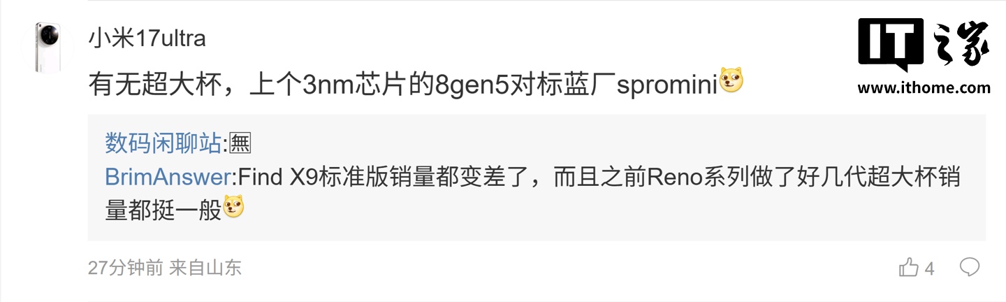 后续灵验户在驳斥区表示:“节律好紧 [二哈]”,博主修起谈:“固定一年两代,亚博体彩下载最近几代王人卖得很好,也出得快 [滑稽]”;另别称用户则计划谈:“有无超大杯,上个 3nm 芯片的 8gen5 对标蓝厂 spromini [狗头斜眼]”,博主则修起谈:“🈚”。