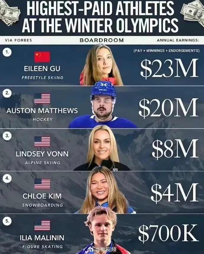 近日,生意媒体福布斯发布了本届冬奥走漏畅员收入排名榜前五名,谷爱凌以2300万好意思元收入排名第一。