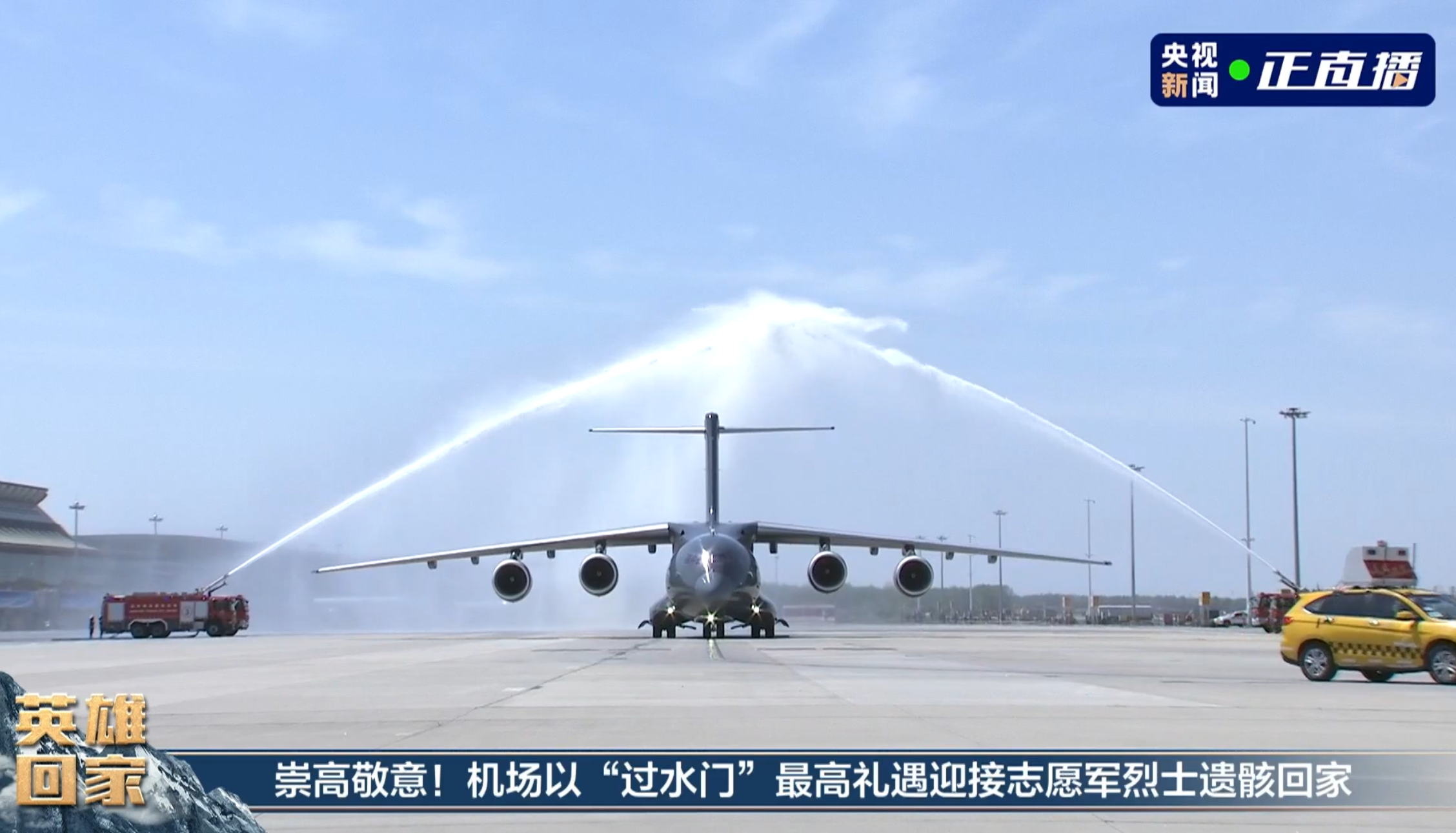 今天,接迎第十三批在韩志愿军义士遗骸的运-20B专机飞抵沈阳桃仙海外机场。专机降逾期,
